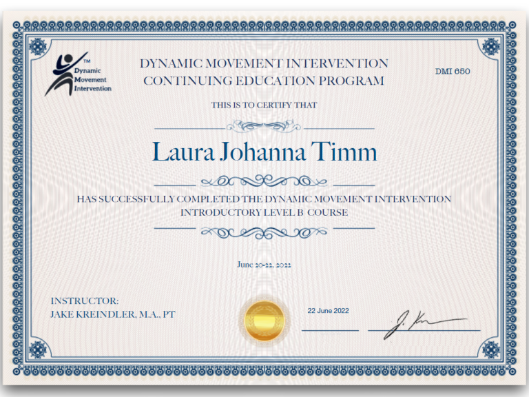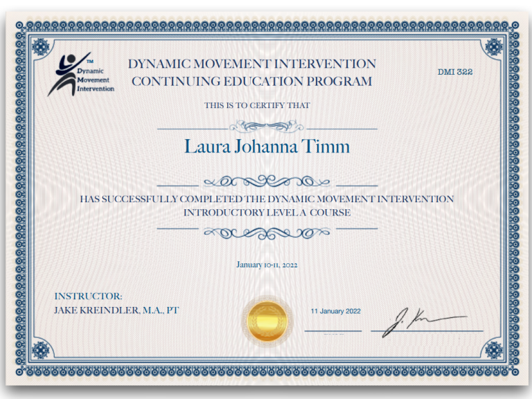 Die Ausbildung in Dynamic Movement Intervention (DMI) erfolgte ab Januar 2022 direkt bei den Begründern der Methode, Jake Kreindler und Jo-Anne Weltman.
